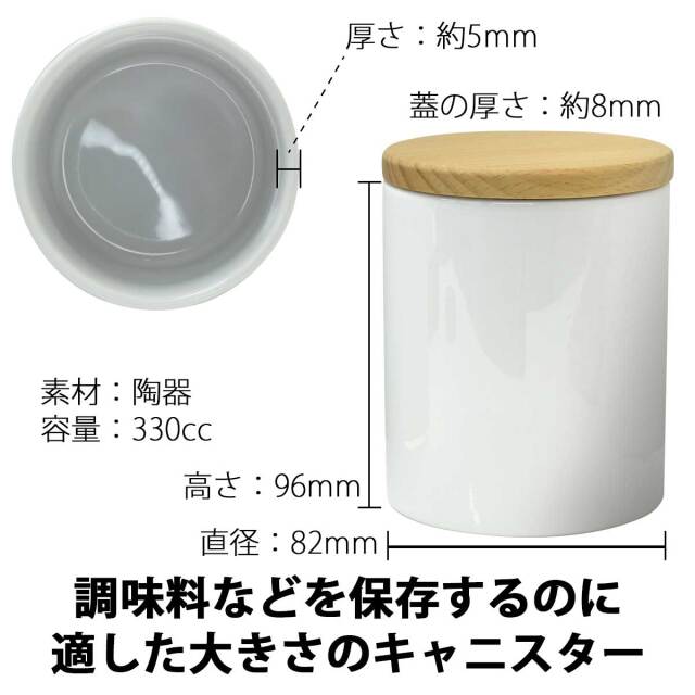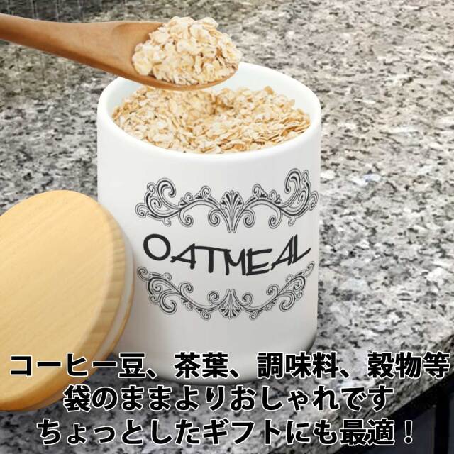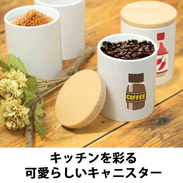 素材は信頼の陶器製。内容量も大きく約330ccの内容量です。珈琲豆や紅茶葉、調味料や穀類・その他の保存に使用できます。保存に便利な木製の専用蓋もセット。ラッピングも1個から無料で承りますので、自分用としてではなく、大切な人へのギフトとしても最適です。