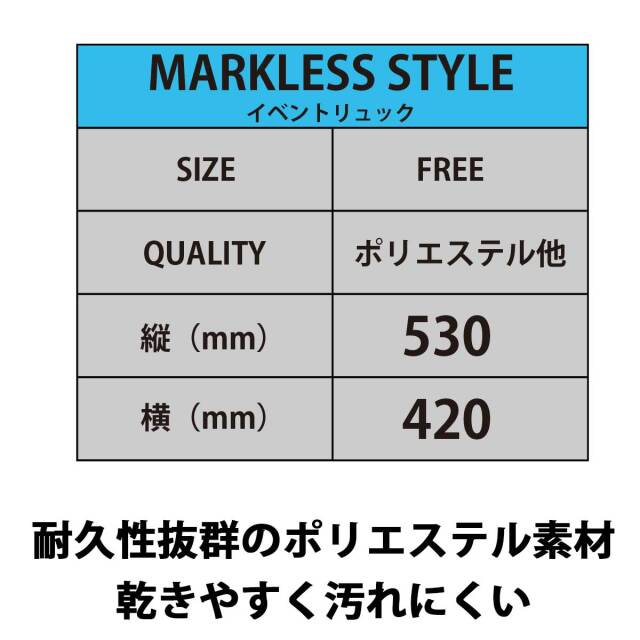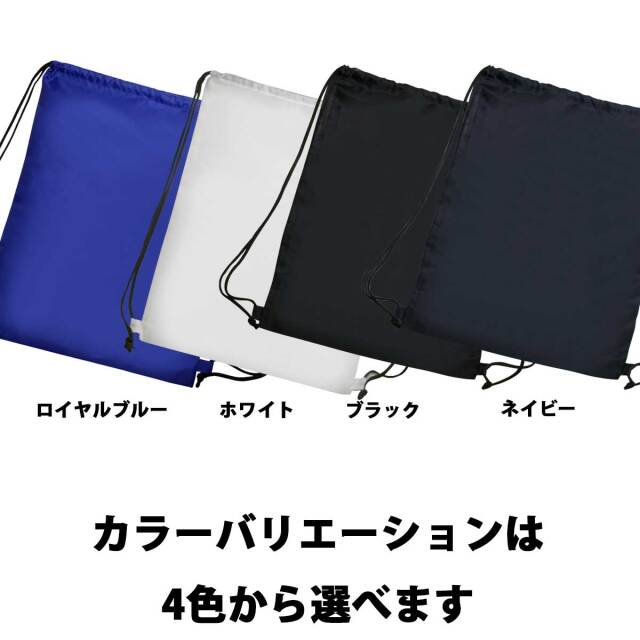 素材は耐久性に優れたポリエステル製。汚れに強く乾きやすい素材です。軽くてかさばらないので持ち運びにも便利。紐の長さはかんたんに調節できるので、大人から子供までご利用いただけます。第2のリュックとしてさっと背負える気軽さも魅力です。この便利なイベントリュックを当店では1個から作れます。またラッピングも個別包装しておりますので、ノベルティとしてではなく、ギフトとしても最適です。