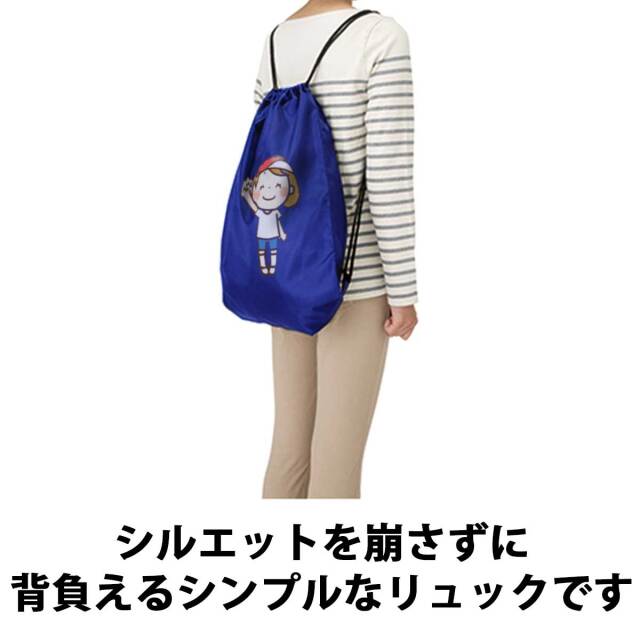 素材は耐久性に優れたポリエステル製。汚れに強く乾きやすい素材です。軽くてかさばらないので持ち運びにも便利。紐の長さはかんたんに調節できるので、大人から子供までご利用いただけます。第2のリュックとしてさっと背負える気軽さも魅力です。この便利なイベントリュックを当店では1個から作れます。またラッピングも個別包装しておりますので、ノベルティとしてではなく、ギフトとしても最適です。
