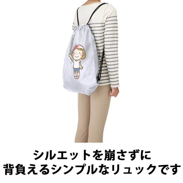 素材は耐久性に優れたポリエステル製。汚れに強く乾きやすい素材です。軽くてかさばらないので持ち運びにも便利。紐の長さはかんたんに調節できるので、大人から子供までご利用いただけます。第2のリュックとしてさっと背負える気軽さも魅力です。この便利なイベントリュックを当店では1個から作れます。またラッピングも個別包装しておりますので、ノベルティとしてではなく、ギフトとしても最適です。
