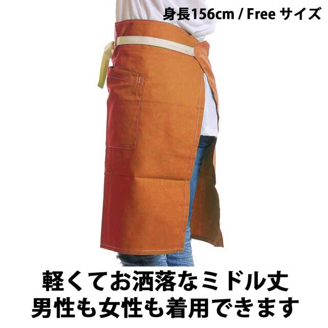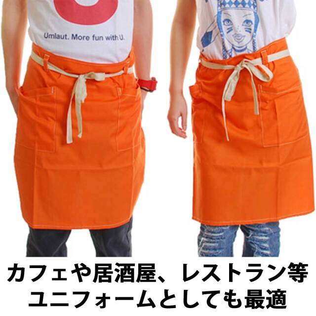 エプロンの素材は、吸水性、通気性に優れた「ロイヤルオックスフォード」。ステッチがさり気なくおしゃれを演出。エプロンにうってつけの素材です。いわゆる腰巻きのミドルタイプ丈で、カジュアルな服装にもよくマッチします。カフェや、レストラン、カジュアル居酒屋等、飲食店のユニフォームを中心に利用が広がっています。もちろんご家庭でも使えます。フリーサイズですので男女関係なく使え、ロング丈のエプロンに抵抗のある男性にもおすすめ。ラッピングも無料で承りますので、ギフトとしても最適です。