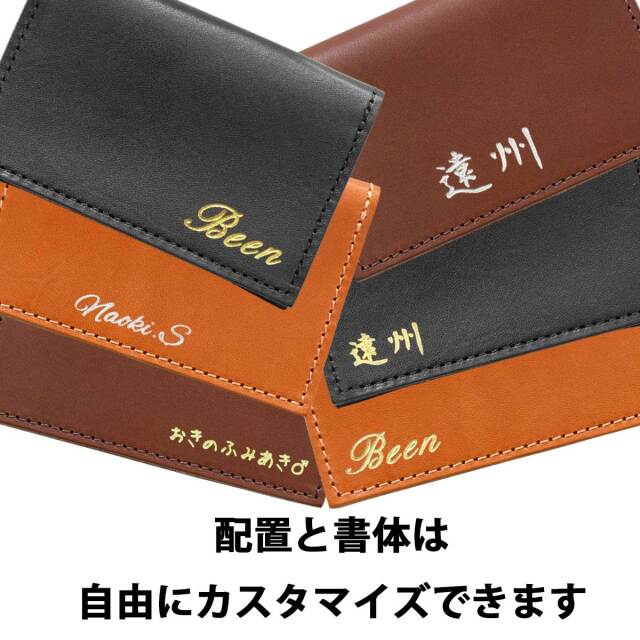あなたが自由にデザインできる、オリジナル名刺ケース。金箔か銀箔を選びテキストを自由に配置して素敵なオリジナル名刺ケースを今すぐ作れます。面倒な見積もりも不要。13時までの注文で即日出荷致します。しかも1個から作れます。ちょっとしたギフトに、仲間とお揃いにしたり、楽しみ方はいろいろ。精巧な箔押し専用加工機による加工で、美しい箔文字を描き出します。書体もお好きな書体が選べますので、よりカスタムされた名刺ケースが自分でデザインできます。テキストデザインとシンプルな名刺ケースの組み合わせで、世界で一つだけの名刺入れを作ってみませんか。