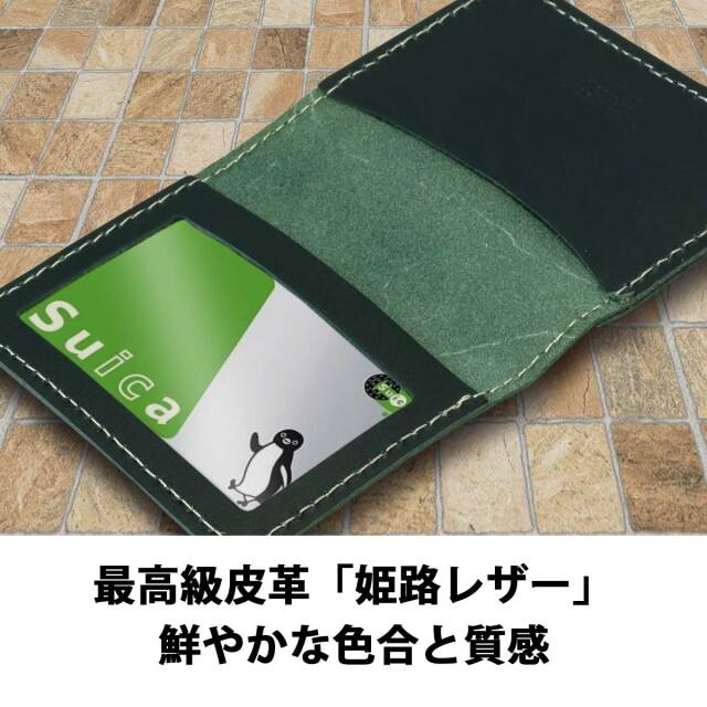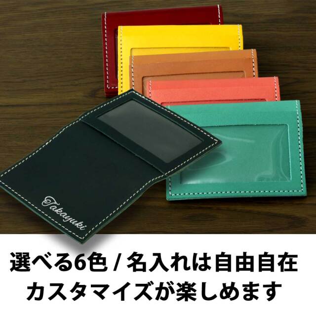 パスケースは6色からお選びいただけます。表側に非接触型カードを収納できるポケットがあり、内側にも非接触型カード、クレジットカードなど接触型カードを収納できるポケットがあります。使い勝手に優れた3ポケット仕様。素材となる革は姫路地方で製造された、通称「姫路レザー」。繊細な質感、鮮やかな発色は姫路レザーならでは。国産最高級皮革をしようした逸品です。ラッピングも1個から無料で承りますので、自分用としてではなく、ギフトとしても最適です。