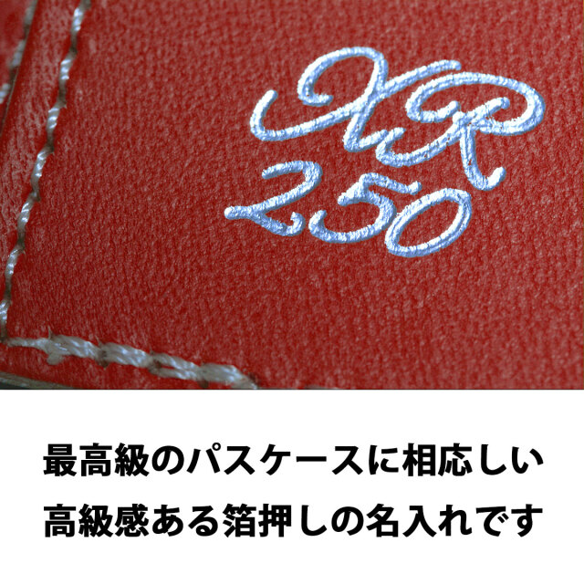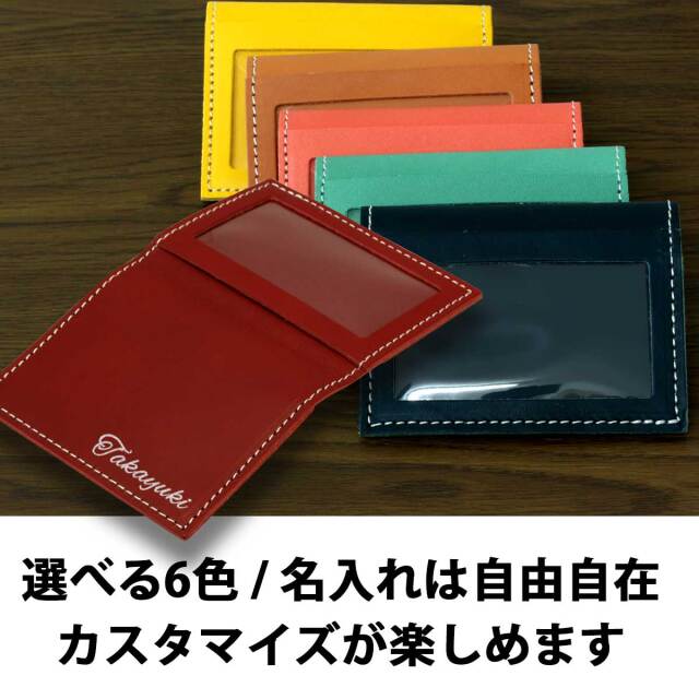 あなたが自由にデザインできる、オリジナルパスケース。金箔か銀箔を選びテキストを自由に配置して素敵なオリジナルパスケースを今すぐ作れます。面倒な見積もりも不要。13時までの注文で即日出荷致します。しかも1個から作れます。ちょっとしたギフトに、仲間とお揃いにしたり、楽しみ方はいろいろ。精巧な箔押し専用加工機による加工で、美しい箔文字を描き出します。書体もお好きな書体が選べますので、よりカスタムされた名刺ケースが自分でデザインできます。テキストデザインとシンプルな名刺ケースの組み合わせで、世界で一つだけの本革製パスケースをを作ってみませんか。