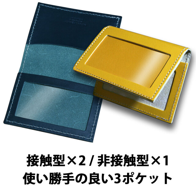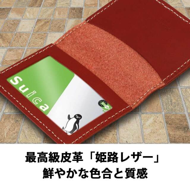 パスケースは6色からお選びいただけます。表側に非接触型カードを収納できるポケットがあり、内側にも非接触型カード、クレジットカードなど接触型カードを収納できるポケットがあります。使い勝手に優れた3ポケット仕様。素材となる革は姫路地方で製造された、通称「姫路レザー」。繊細な質感、鮮やかな発色は姫路レザーならでは。国産最高級皮革をしようした逸品です。ラッピングも1個から無料で承りますので、自分用としてではなく、ギフトとしても最適です。